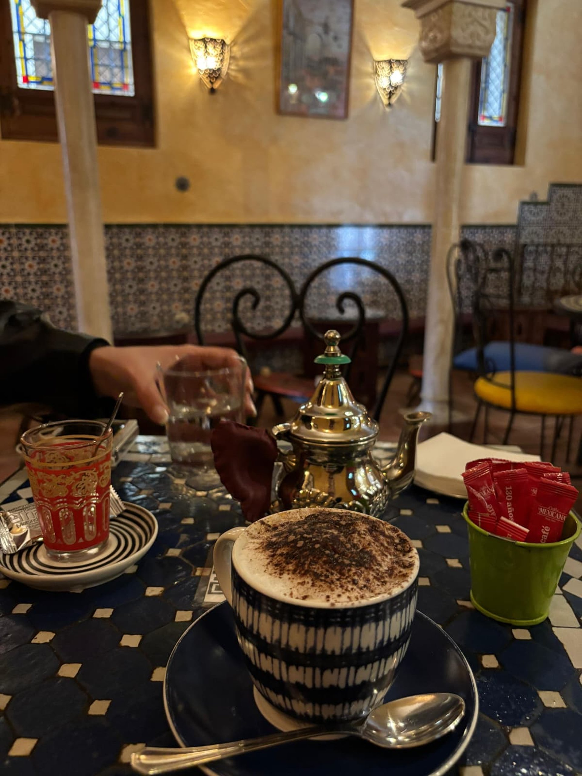 Tucked away in the historic center are charming teterías (tea houses). With their soft lighting, arabic decor, and intimate corners, they offer a peaceful escape. It’s a lovely way to slow down and enjoy a quiet conversation over Moroccan mint tea and local pastries.